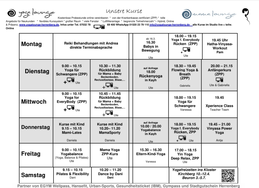 viele Kurse sind ZPP-zertifiziert und können bei der Krankenkasse eingereicht werden.Das n
